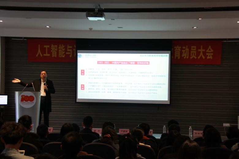 于学院报告厅召开党史学习教育动员大会,对全院党史学习教育进行动员部署。中国计算机学会无锡分部秘书长卢惠林教授,马克思主义学院教授陈绪新,后勤保障系统党委副书记金明媚,后勤保障系统党委环境中心党支部书记吴湘娟,院党委书记、院党史学习教育领导小组组长张华及学院全体党委委员,师生党员代表出席会议,院党委副书记、院党史学习教育领导小组副组长陈祎主持会议。