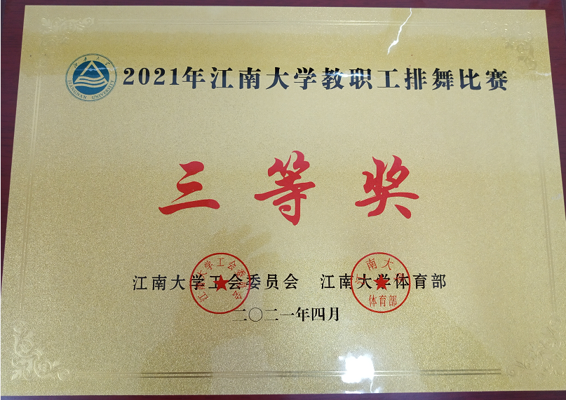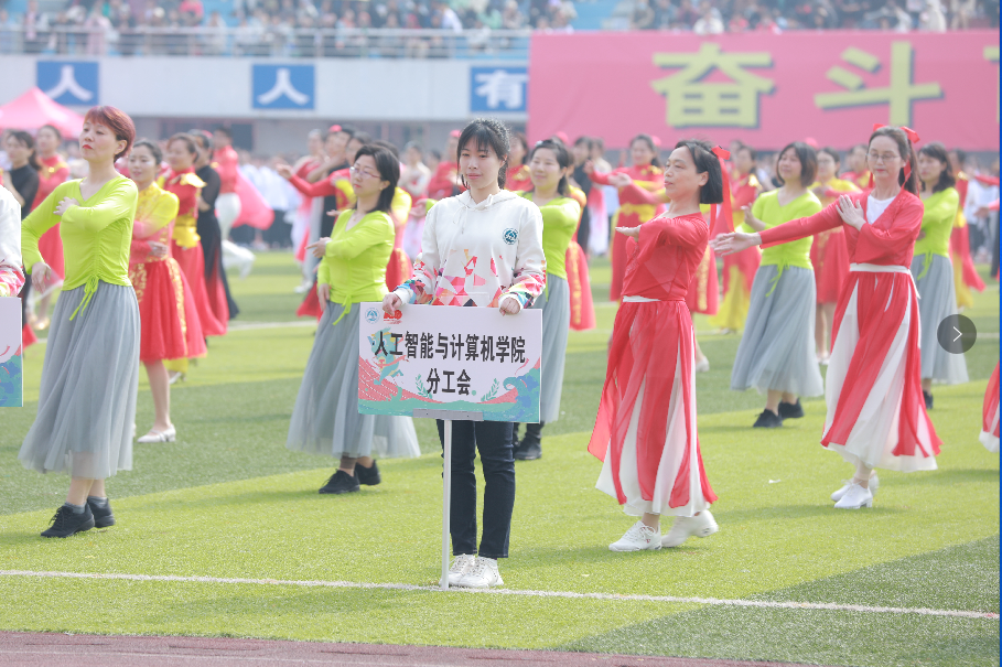 的老师们身着颜色鲜亮的红白色纱裙,在赛场上显得格外突出;老师们整齐划一的动作、标准有力的舞姿,赢得了在场师生的阵阵掌声,无人机的镜头下记录下老师们意气风发的精神风貌。最终排舞比赛,老师们获得三等奖的好成绩。