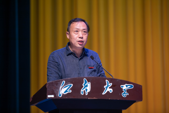 随后,我院数字媒体技术系主任、至善青年学者、博士生导师邓赵红教授作为教师代表发言。邓赵红老师勉励新一届智能学子要努力培养自身专业兴趣,规划好自己的大学生涯,敢为人先、勇攀高峰,以创新成就卓越人生。