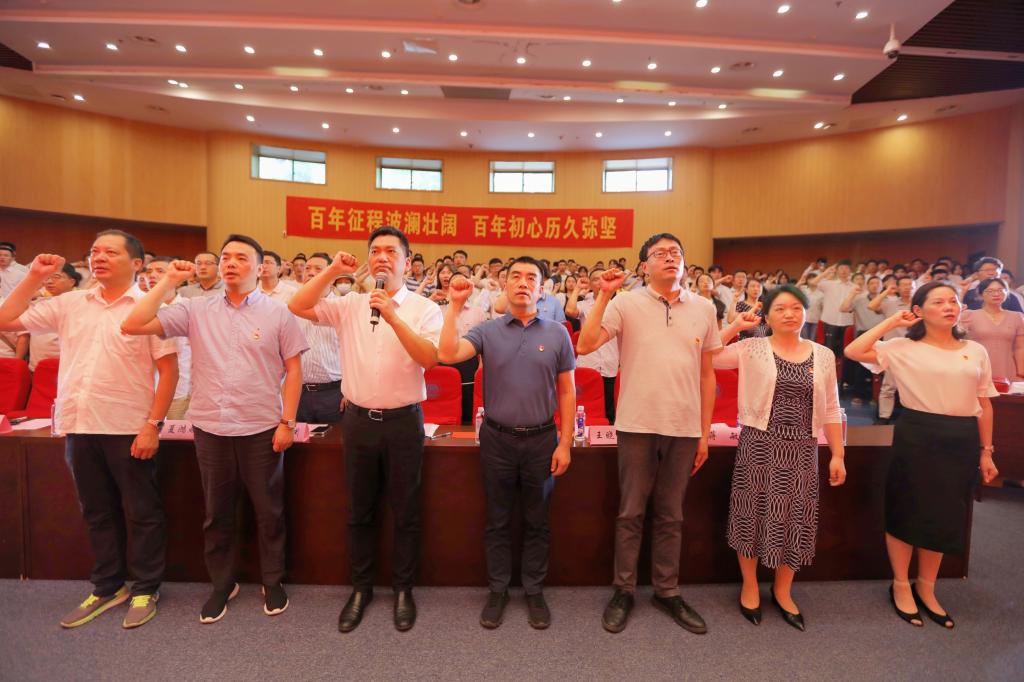 随后,面对鲜红的党旗,新党员入党宣誓,老党员重温入党誓词,党委书记张华领誓,全体党员声音铿锵有力,表明了为党的事业奋斗终身的坚定决心与赤诚忠心。