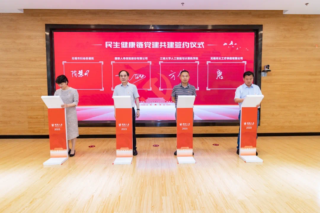 民生健康事业事关民生福祉、经济发展,与群众利益息息相关。活动现场,方伟与国联人寿、无锡市妇幼保健院、太工疗养院等单位领导现场签署民生健康链党建共建协议,旨在以党建共建为纽带,打造覆盖健康保险、健康诊疗、健康医药、健康体检等内涵丰富的民生健康链,以党建链带动产业链、人才链、信息链、创新链、服务链“六链融合”,以党建共建推动组织融通、业务融合、发展融入,打造“链上党建”新标杆。