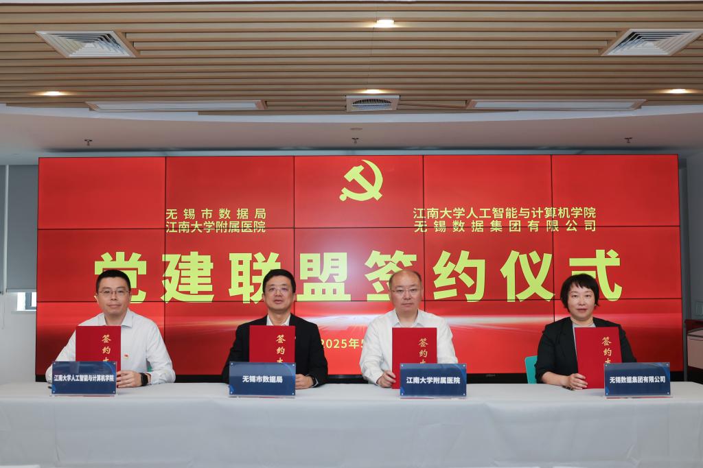 附属医院、无锡数据集团有限公司举办党建联盟共建签约仪式。市委市级机关工委副书记彭梅,市数据局党组书记、局长胡逸、副局长袁禄来、朱国富、刘继先、颜春水等,御宅屋