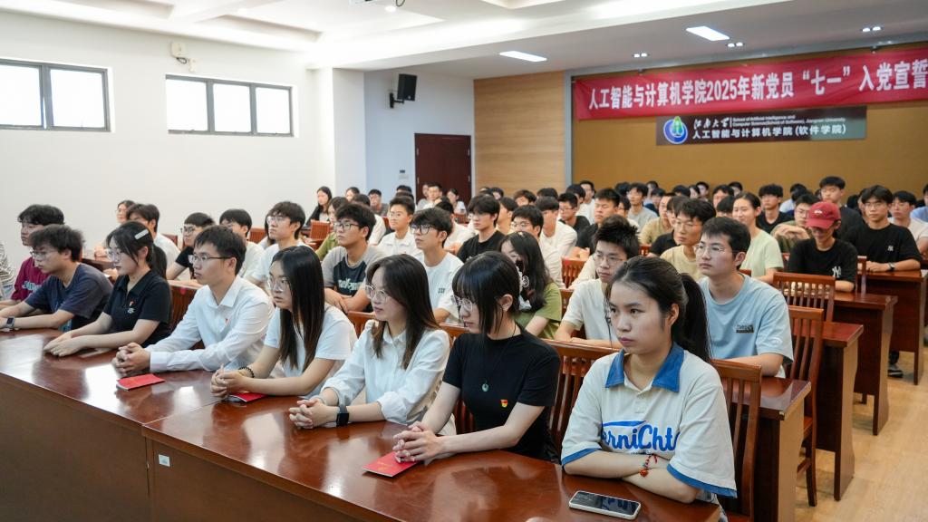 仪式在雄壮的《国际歌》声中拉开序幕。缪可嘉宣读新发展党员名单,戴士焱进行领誓,全体预备党员面向党旗庄严宣誓,铿锵誓言彰显了为党的事业奋斗终身的坚定决心。与会领导和嘉宾为42名新党员佩戴党员徽章、发放《中国共产党章程》。一枚枚党徽闪耀胸前,一本本党章郑重传递,象征着红色基因的代代传承。