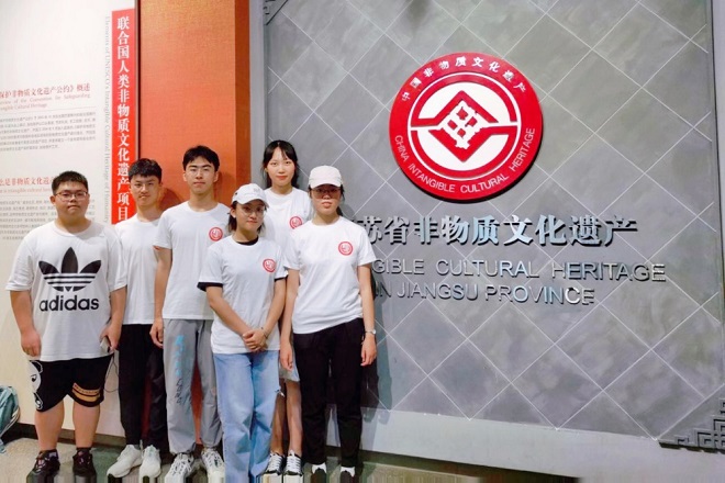 最后,在疫情肆虐之前“遗路苏行”实践团来到江苏省会——南京,参观了位于南京博物馆内的江苏省非物质文化遗产展厅。从非物质文化遗产的定义,到非物质遗产的的保护与传承,团员们一一进行了细致了解。不仅如此,团员们还近距离接触到技艺、曲艺、民俗、文学等各式各样的江苏省代表性非遗,深刻地体会到中华民族非遗散发的无限魅力。在南京实践结束之后,南京疫情突然爆发,这也让实践团成员们认识到疫情之下,非遗文化的地域局限性导致非遗难以生存和发展的现状,更加坚定了成员们宣传、弘扬和发展非物质文化遗产的决心。