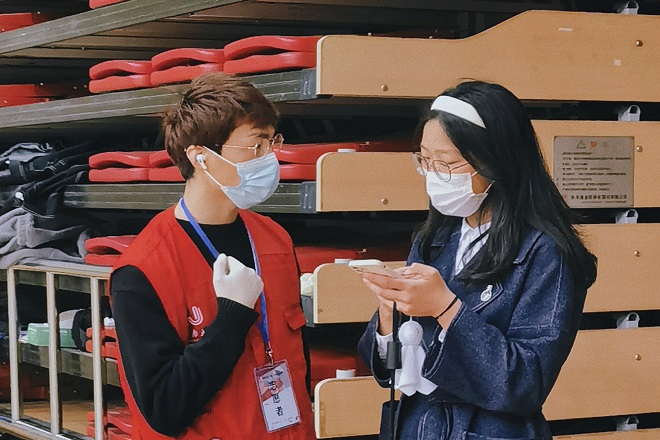 4月11日,我校启动第二轮全员核酸检测,在为期一周的核酸检测志愿者服务过程中,我院党员同学带领学院志愿者们奔忙在核酸检测地点各个地点、快速有序的开展检测工作。身穿“红马甲”的我们有条不紊的协助医护人员进行入口引导、核酸检测预登记、现场秩序维护、出口登记等工作。在服务过程中,志愿者们坚持用心服务,用爱值守,考虑到核酸排队需要一定的时间,我们还贴心准备了充电宝等设备,以防同学手机没电无法显示预制码等特殊情况。志愿者们分工协作,操作娴熟,为核酸检测工作的顺利进行贡献青春力量。