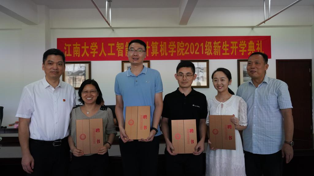 班主任老师是大学生成长成才路上的引路人。本次开学典礼现场还举办了2021级新生班主任聘任仪式。院党委书记张华和院长刘渊为12位班主任颁发聘书并合影留念。