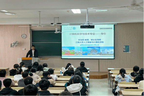 10月7日下午3:30,我院教授、博士生导师李光辉老师在2C203为计算机科学与技术专业2022级学生做专业转型教育。李老师主要从为什么要学计算机、怎样才能学好计算机和御宅屋