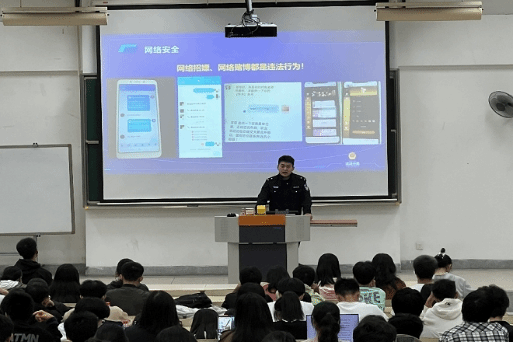 随后,他向大家介绍了“人物+沟通工具+要求=诈骗”的通讯网络诈骗识别公式,并以“不透露”“不轻信”“不转账”三点讲解了防范通讯网络诈骗的技巧和方法。他提醒同学们必须擦亮双眼、时刻保持警惕,牢记防诈骗安全知识,不让诈骗分子有机可乘。