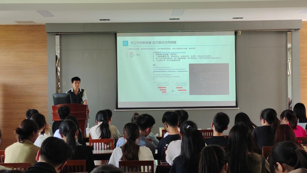 举行“职行千里,智能启航”求职经验分享活动。本次活动邀请五位已经确定毕业去向的应届硕士毕业生围绕自我探索、学业生活、求职准备等进行交流与分享。