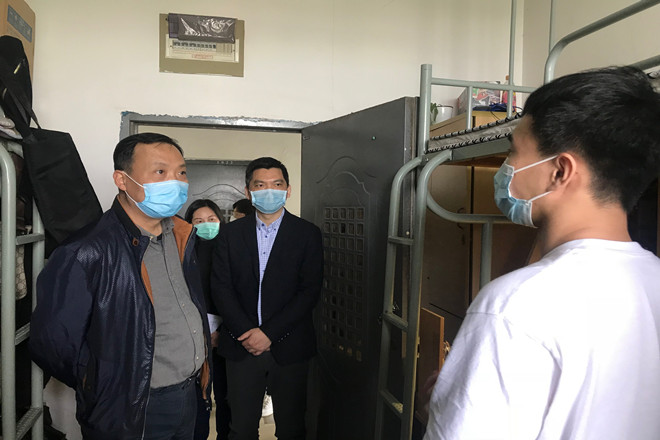党委书记张华、院长刘渊、党委副书记陈祎、分团委书记沈丹及研究生辅导员赵丽敏一行走访研究生宿舍,为返校学生送上亲切的问候和暖心的关怀。