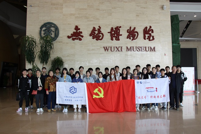4月14日下午,蠡湖退休第三支部曹秋萍书记、退休前任档案馆书记潘杏仁同计科2003班全体成员参观无锡博物院。在参观过程中,曹秋萍结合无锡革命时各科学家实业报国,科创报国向大家介绍老一辈人的革命奋斗经历。与此同时,曹秋萍重点强调了努力学习、砥砺前行的重要性并鼓励同学积极弘扬钻研精神与革命奋斗精神。