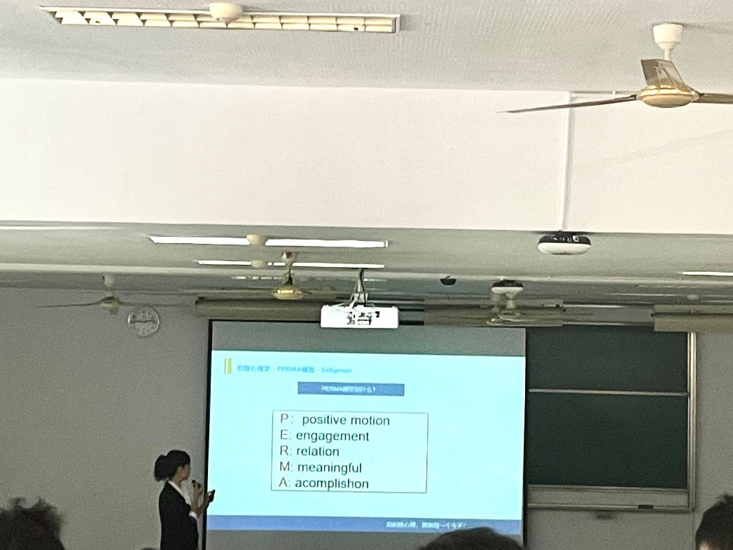 本次讲座的主题为《积极心理学PERMA模型对研究生心理教育的启示》,窦老师以PERMA模型为基础,向同学们展示了全面的幸福一定是人在积极情绪、投入、人际关系、意义和成就五个维度上的充分的体验和显示。讲座过程中,窦老师对同学们的生活状况进行了一定的了解,并通过当前社会的现实事件引导同学们正确认识消极情绪和正面情绪一样是人性的重要组成部分,有警惕和唤醒的作用,应该被我们接纳,而不是逃避。最后,窦老师为帮助同学们增加积极情绪,提供了几个实用的小工具,包括记录小确幸、建立快乐档案、培育乐观归因风格等等,并且引导同学们管理自己的情绪,学会与人相处。