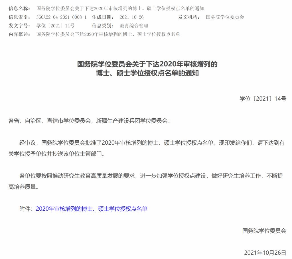 近日,教育部网站发布了《国务院学位委员会关于下达2020年审核增列的博士、硕士学位授权点名单的通知》(学位〔2021〕14号),根据文件内容,学院软件工程学科成功获批一级学科博士学位授权点,标志着学院的学科建设取得了新的突破性进展。