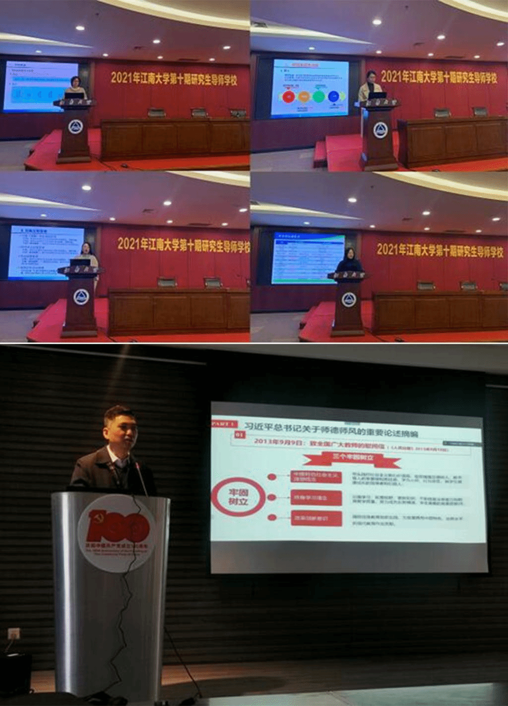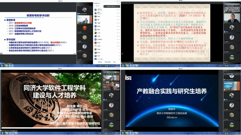 本次研究生导师学校还邀请南京大学软件学院陈振宇教授、南京师范大学文学院党委书记张明明教授、同济大学软件学院院长赵生捷教授围绕产教研融合实践、研究生思政和心理健康、学科建设与人才培养等主题做了高质量的报告。我校未来食品科学中心副主任周景文教授则分享了青年教师成长为导师的经验与教训。