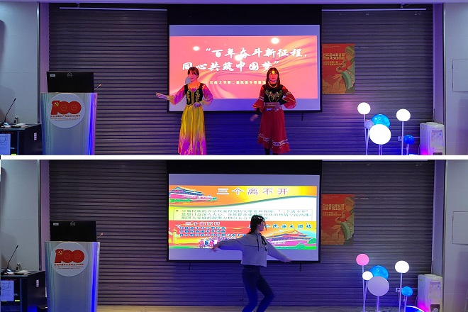 在主持人对比赛评委、比赛流程及比赛规则进行了介绍后,本次比赛正式开始。来自汉族、维吾尔族、藏族、蒙古族、哈萨克族、白族、土家族等10名晋级决赛的少数民族同学身着民族服饰,围绕“民族团结一家亲,同心共筑中国梦”的主题,弘扬民族团结,铸牢中华民族共同体意识,加强各民族交往交流交融,促进各民族像石榴籽一样紧紧抱在一起,将共同团结奋斗、共同繁荣发展的精神,结合自身经历和身边的故事展现给了现场的每一个人,选手们各显神通、寓情于声、风格各异,彰显了当代大学生积极向上的精神风貌。精彩的演讲不断博得台下同学们的掌声和喝彩声,现场气氛十分活跃。评委们分别从主题内容、语言表达、即兴演讲和综合印象等方面为选手们进行了打分。经过激烈的角逐,最终来自商学院国贸2103班木阳同学荣获一等奖,她赛后激动的表示:“我们是党百年目标的见证者,也是国百年目标的亲历者,生逢最好的时代,我们怎能自甘落寞?欲知大道,必先知史。这次比赛是思想的碰撞和交流,它更是我们共同向历史寻经验、求思路、找方法,读懂百年党史的精神内涵的有效途径。”