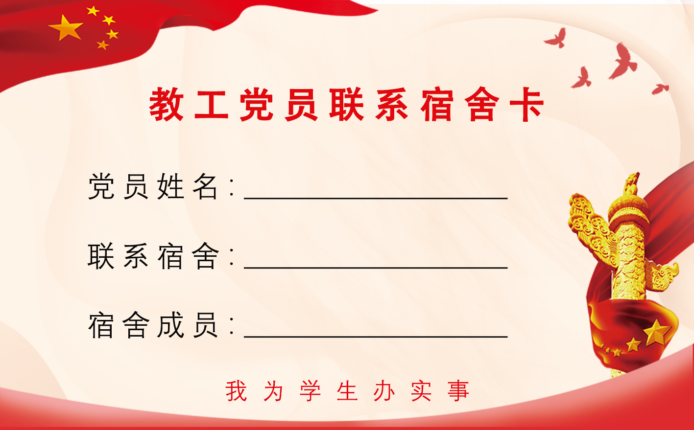 党员教职工积极联系学生宿舍,围绕“德、智、体、美、劳”五大方面,充分发挥党员教职工立德树人作用,深入推进疫情期间三全育人,以实施方案为依托,以教工党员联系宿舍五色卡为载体,以我为学生办实事为宗旨,“五色育人,同心筑梦”——党员教师联系学生宿舍系列活动今日拉开序幕。
