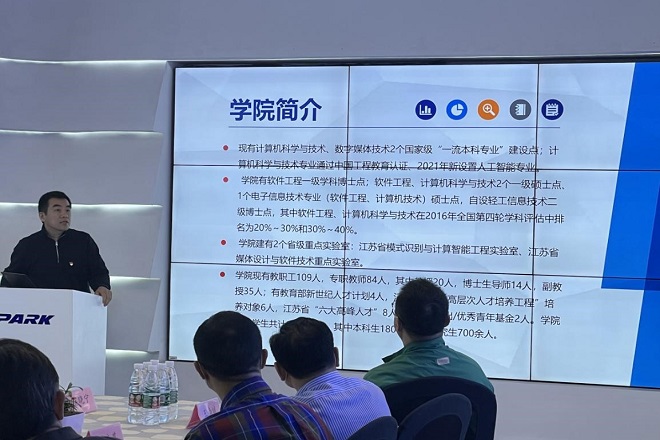 的办学情况、特色优势、科研成果和应用领域,柴院长就学院的科研成果及应用领域作了详细的介绍,深入浅出,充分彰显学院在专业领域的技术创新和科研能力。