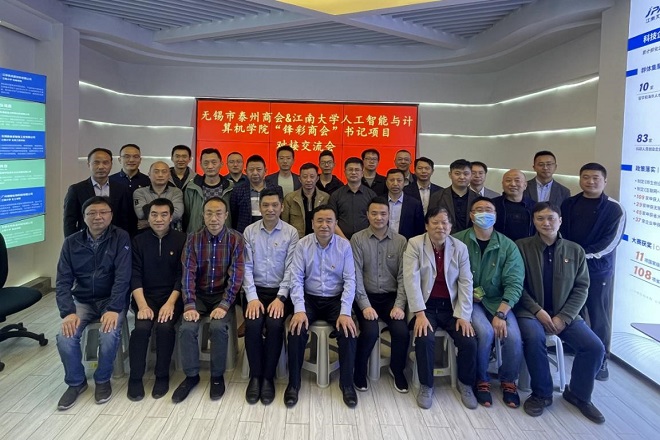 党委书记张华,副院长、教授柴志雷,院长助理钱鹏江,人工智能系系主任宋威,宋晓宁教授,无锡市工商联副主席,市政协委员,无锡市泰州商会会长徐雪宏,商会党支部书记周庄其,党支部副书记王南斌,副会长顾本红,副会长马扣龙,副会长马静,商会总顾问徐曜及商会企业家代表共30余人参加交流会,会议由商会党支部高军主持。