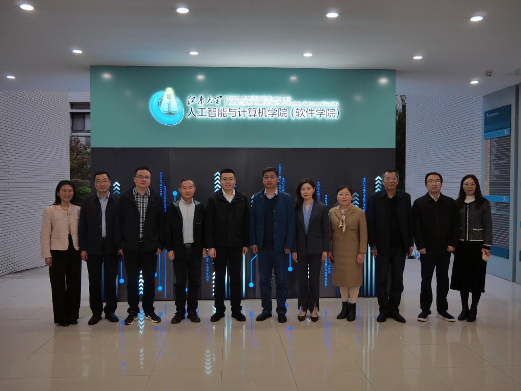 11月10日,扬州大学信息与人工智能学院(工业软件学院)党委书记潘骏、院长刘维率学院全体班子成员来我院调研交流。我院党委书记魏珍吉、院长方伟、党委副书记王莉莉、副院长谢振平等参加座谈。座谈会由方伟主持。