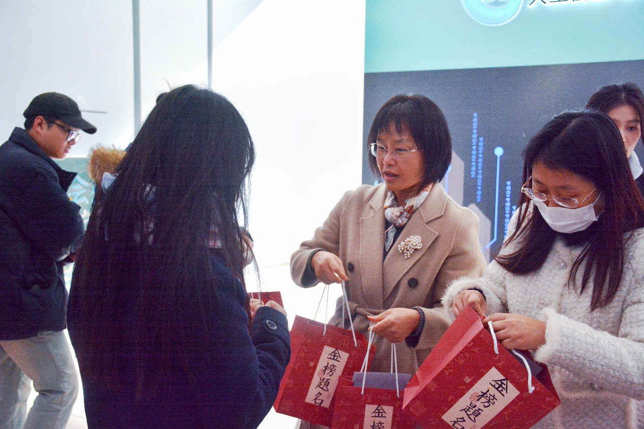 学院为考研学子精心准备“金榜题名”考研“福袋”,包含考研文具套装、“加油鸭”手办、手机支架、定制可乐、手帕纸以及班级同学手写的祝福明信片。在学院大厅布置了考研加油打卡墙和上岸挂布,门口设置“一研为定,金榜题名”拱门,寓意每一位学子走过拱门时,都将一举夺魁,成功上岸。