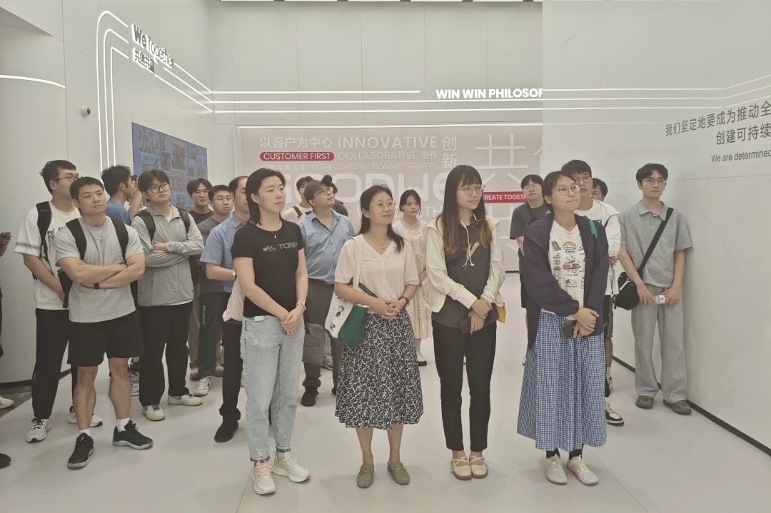 在固德威工作人员的热情接待和全程引导下,师生一行走进企业自动化生产线、智慧能源展示馆等核心区域,实地参观企业的先进设备和技术成果,沉浸式了解光伏逆变器、新能源系统解决方案等核心产品的研发与应用场景,深入感受企业在绿色低碳发展浪潮中的创新实践与战略愿景。