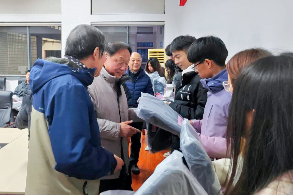 活动中还播放了2018级预科生巴特尔和苏玲萍发来的问候视频。震泽服务站领导向现场同学发放新春慰问品并合影留念。