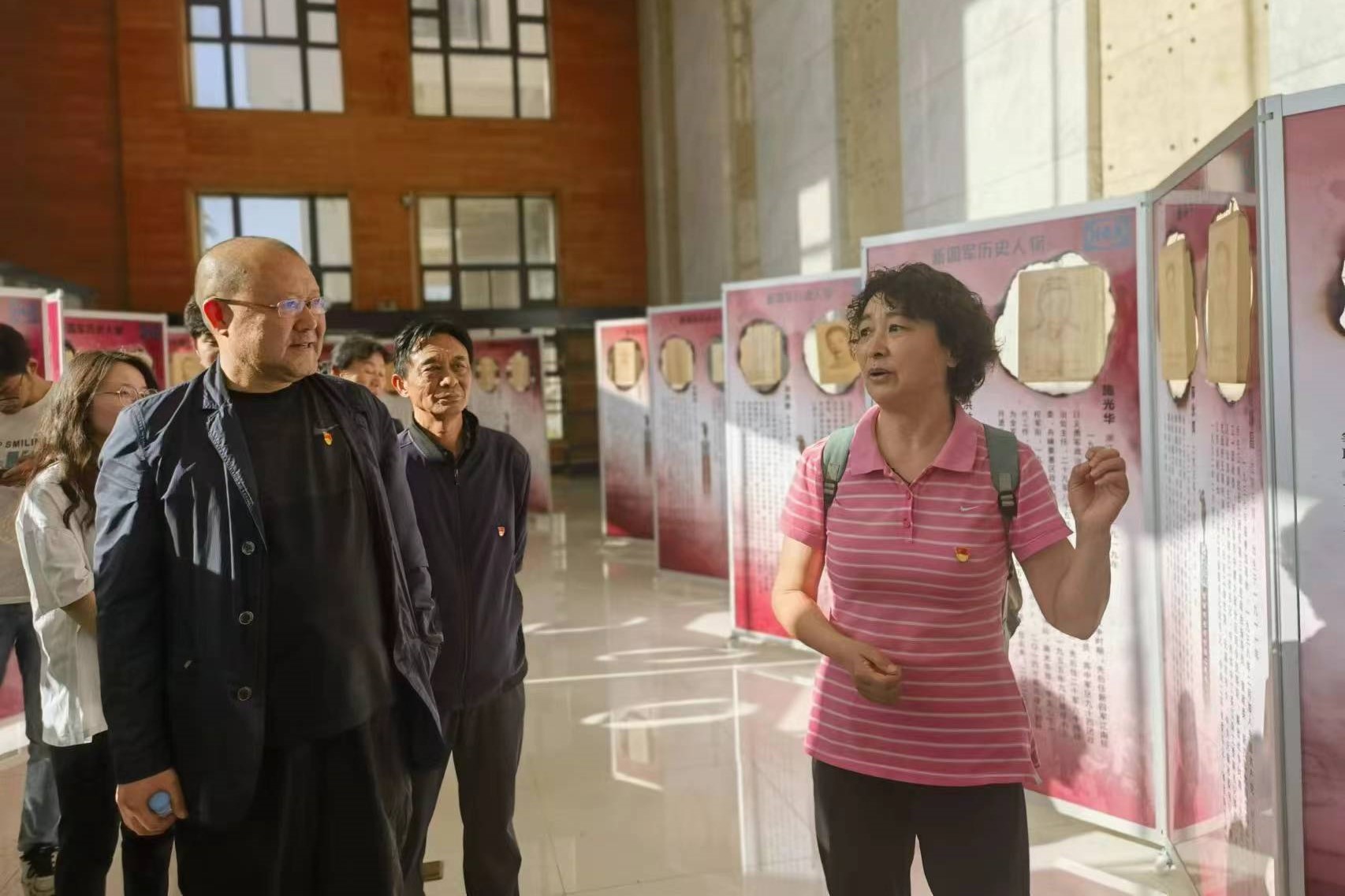 公益图书馆,参观新四军历史人物画展专题展览。郝志刚围绕新四军将士抛头颅、洒热血的浴血奋战事迹,深情回顾了新四军的光辉历程,为学生党支部上了一堂生动鲜活的“行走的微党课”。他强调,新四军精神是中华民族宝贵的精神财富,希望青年一代要学好党史、用好党史,学习革命先辈的廉洁风范,发扬革命先辈的作风精神,传承红色基因,赓续红色血脉。