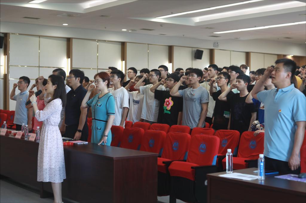 活动第二阶段在庄严的《国际歌》中开始,缪可嘉宣读42名新党员名单,入党宣誓仪式由王园园领誓,全体党员面向党旗庄严宣誓,表达坚定不移跟党走的青春誓言。学院领导和嘉宾为新发展党员佩戴党员徽章、发放《中国共产党章程》,以仪式教育为学生党员培根铸魂。新党员代表廉晓庆进行发言,他代表新党员庄严承诺,将不断学习和成长,展现党员的精神风貌,争做新时代先锋。陈琳做党纪学习教育授课,他勉励青年党员加强对党的基本理论知识学习、具备争先创优的精神品格,增强做中国人的志气、骨气和底气,人人争做优秀的智能学子。
