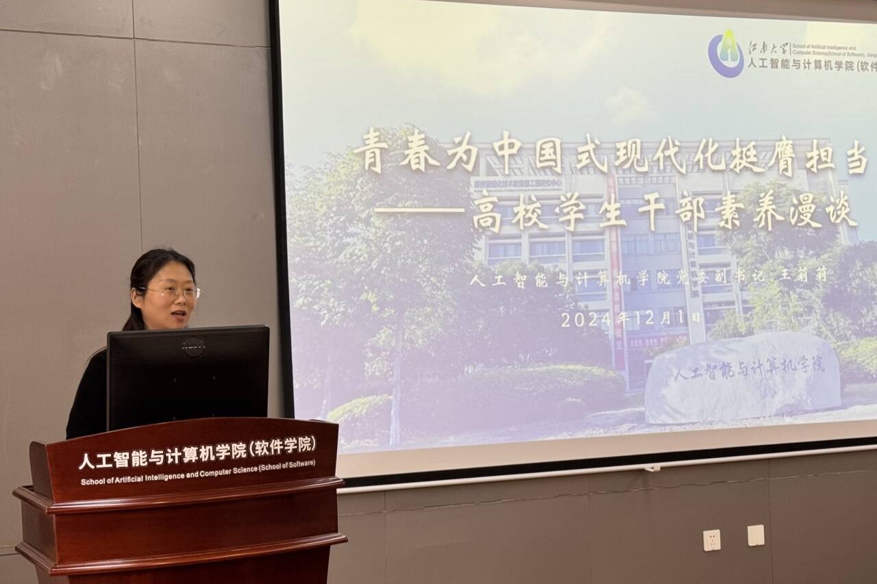 活动最后,王莉莉作《青春为中国式现代化挺膺担当—高校学生干部素养漫谈》专题报告。她从高校学生干部的作用、高校学生干部应具备哪些素养、如何提高学生干部素养、如何有效协调几对关系等方面讲述了青年学生干部的责任与担当。她强调高校学生干部是青年群体中的佼佼者,是连接学校与学生的桥梁,更是推动社会进步和发展的重要力量,希望青年学生干部以信念过硬、政治过硬、责任过硬、能力过硬、作风过硬为成长目标,不断锤炼自己的意志品质和能力素质,服务好同学、建设好学院、宣传好学校,为实现中华民族伟大复兴的中国梦贡献青春力量。