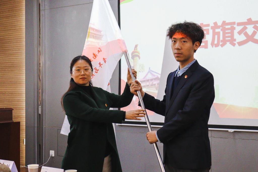 倪秋筱作为学员代表发言。她提议学员们要加强政治历练,做忠诚于党、政治过硬的红色接班人;锤炼过硬本领,做勤奋学习、躬耕实践的先锋领路人;提高奉献意识,做心系学院、服务同学的群众贴心人。随后,王莉莉为此次训练营学生干部代表闫泓瑾授予营旗。